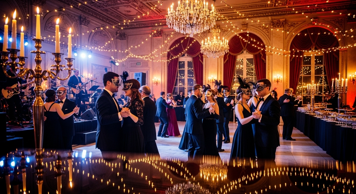Elegante y misterioso, un tema de eventos corporativos inspirado en la mascarada agrega drama y sofisticación. Los invitados llegan con atuendos formales y máscaras, y la noche se desarrolla con música refinada, danza y toques teatrales.