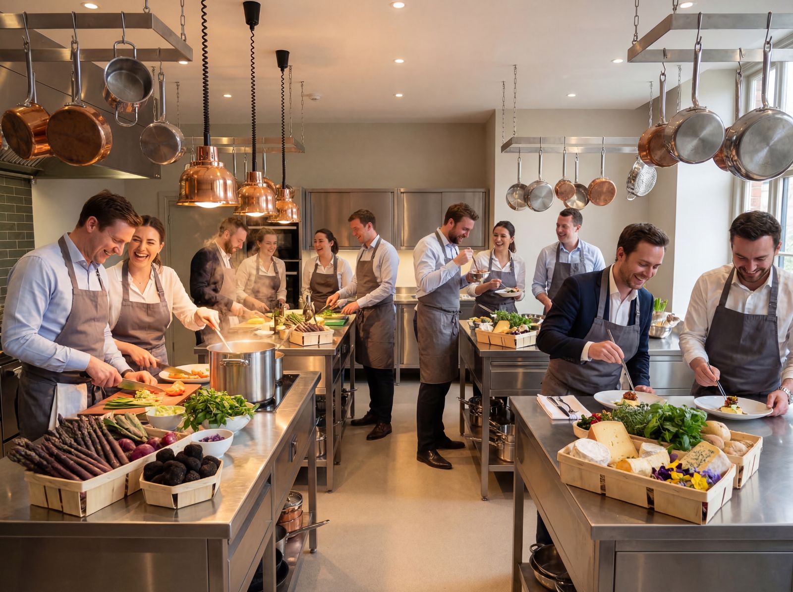 An interactive workshop that fosters collaboration through a "surprise basket" team challenge. Under the guidance of a professional chef, teams prepare a 3-course meal and a creative salsa, presenting them to a jury for a symbolic award ceremony.